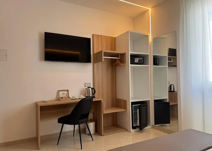 Comprenant un balcon, les chambres d'Hotel Hotiday Otranto Centro Storico sont équipées d'une TV à écran plat avec des chaînes satellite. Equipées d'un placard et d'un bureau, les chambres disposent également d'un minibar et d'une cafetière/théière.